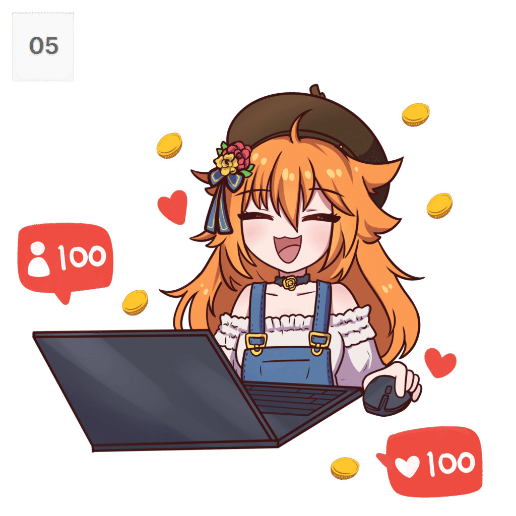 We primarily work with VTuber brands and other anime-related content creators who are looking for artwork for their merchandise, such as keychains, prints, plush designs, and more.