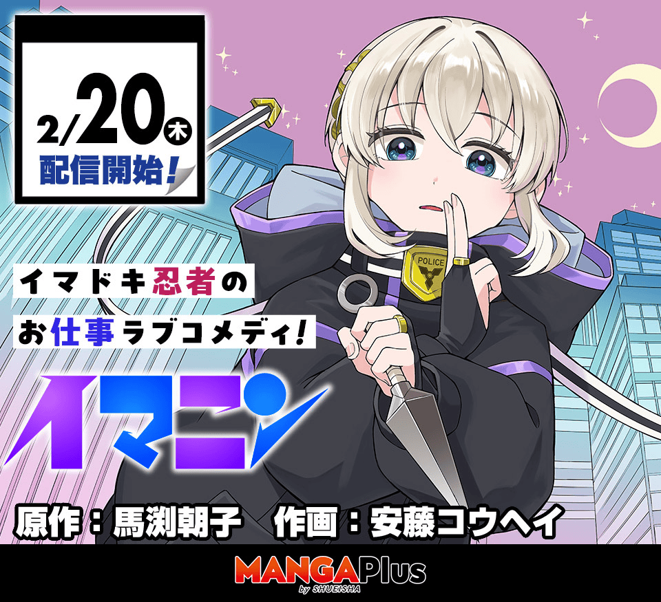 The official X (Formerly Twitter) account of Shueisha’s Manga Plus online manga platform has announced that author Mabuchi Asako and artist Andou Kouhei will release a new manga series, Imanin, on February 20.
