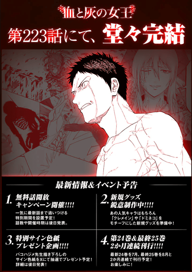 The official website of publisher Shogakukan’s Manga One online manga platform has announced that Bako Hajime’s Killer Vamp manga’s 24th volume will be published in July, and the 25th and final volume will be published in August.