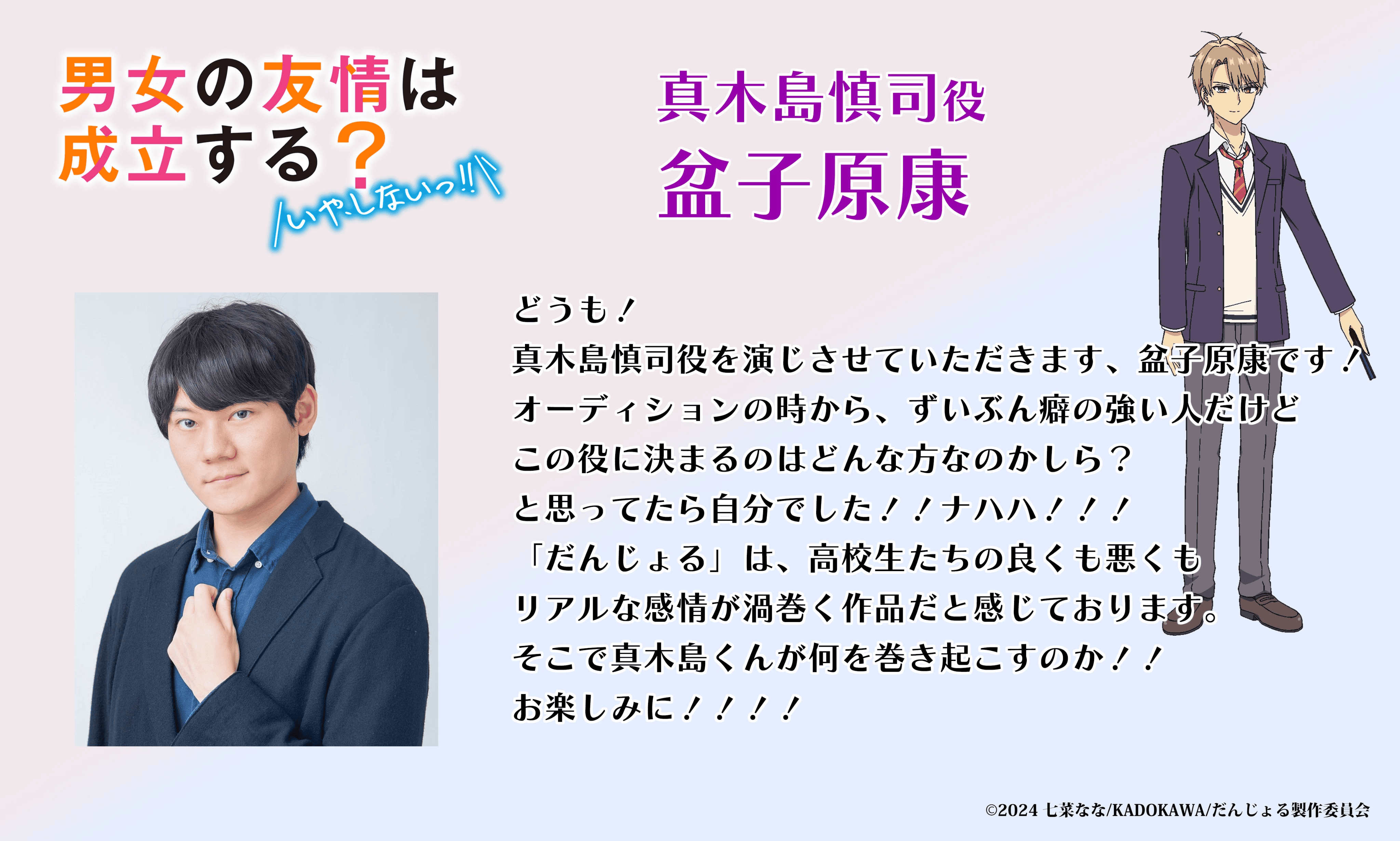 My name is Bonkobara Kou, and I will be playing the role of Makishima Shinji!