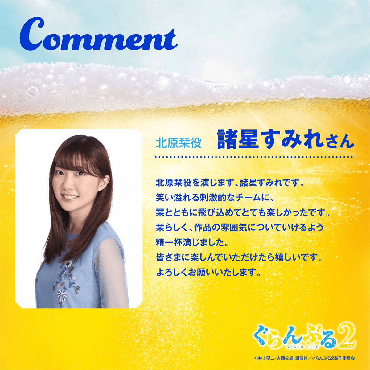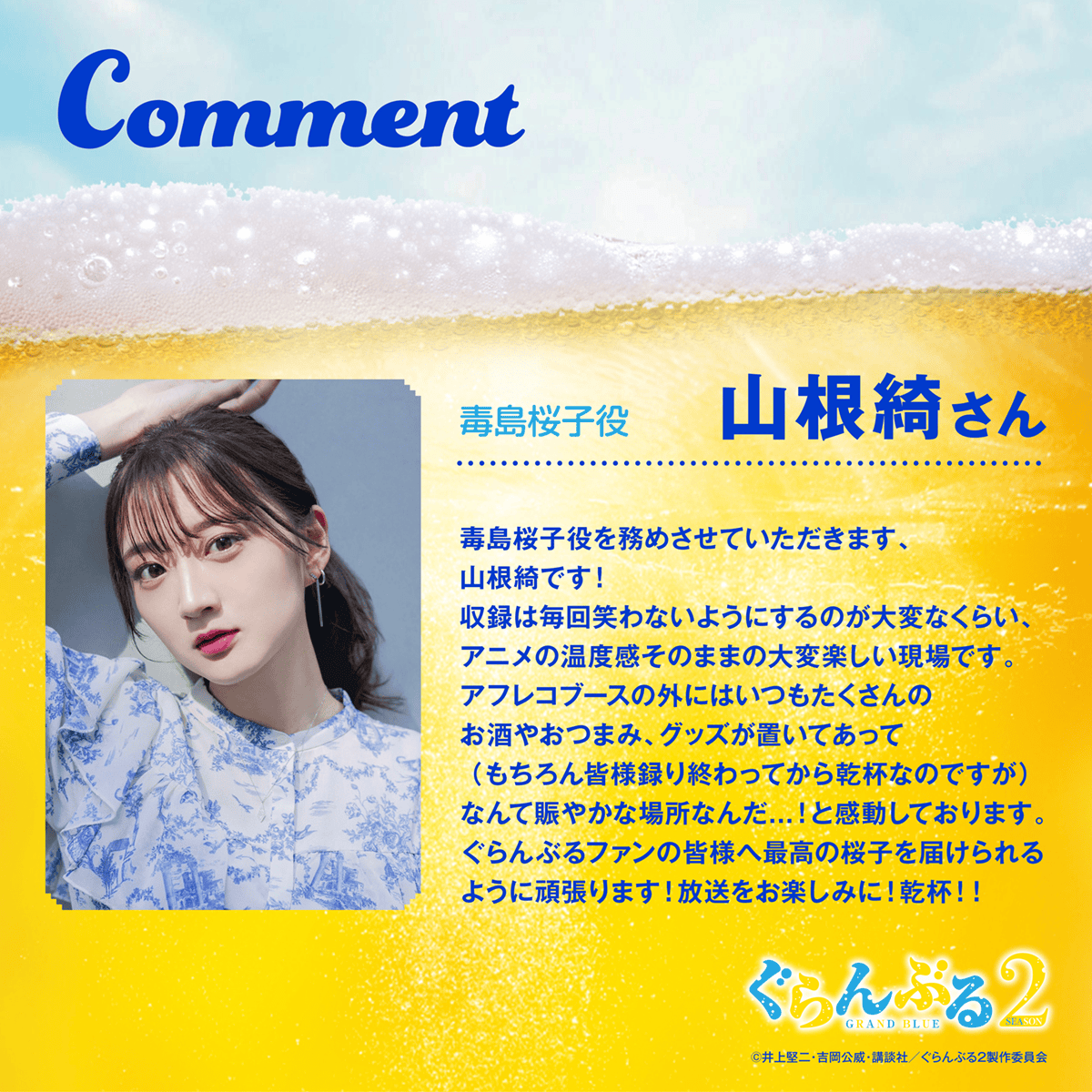 I will do my best to deliver the best Sakurako to all the Grand Blue fans! Please look forward to the broadcast! Kanpai!!”
