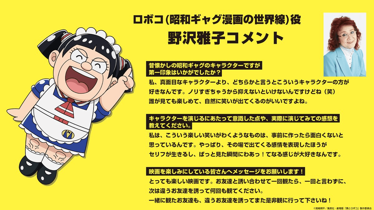 - Nozawa Masako as “Showa era comedy world Roboco”