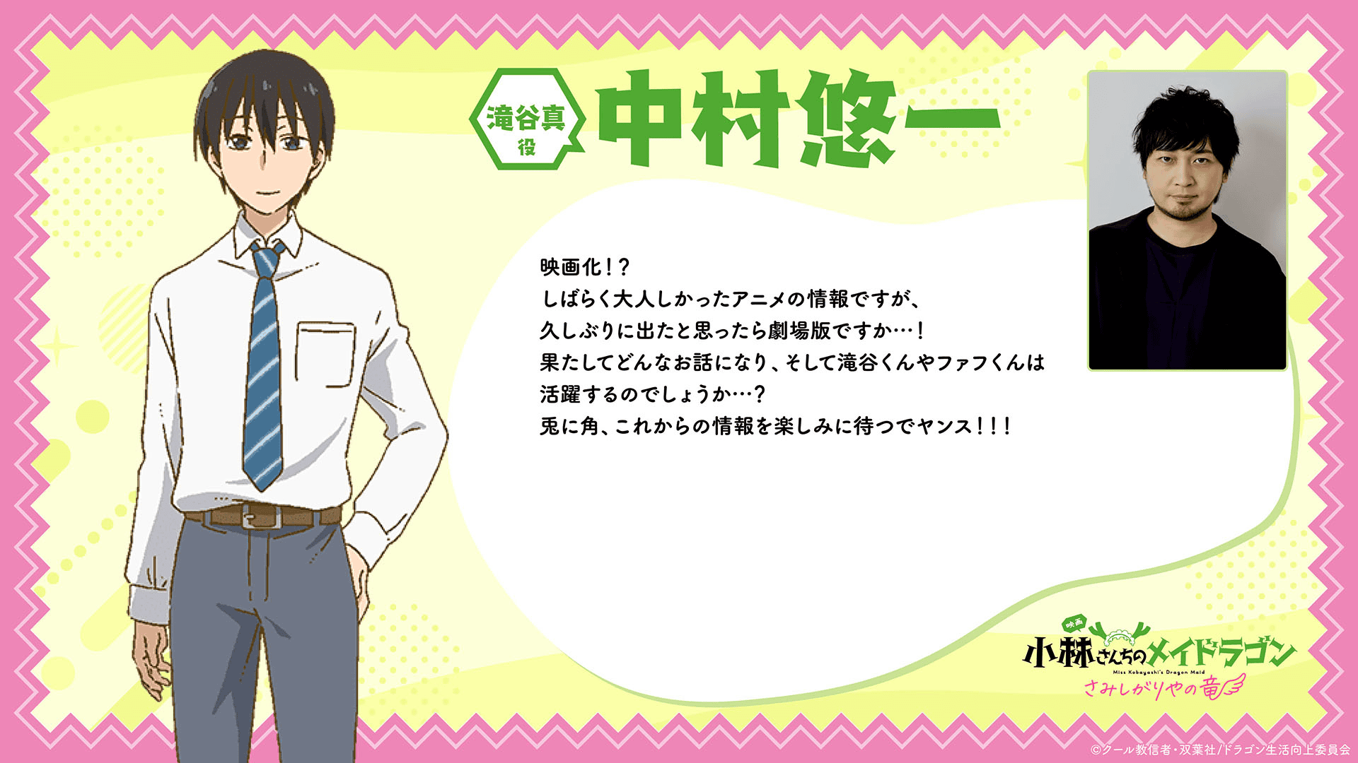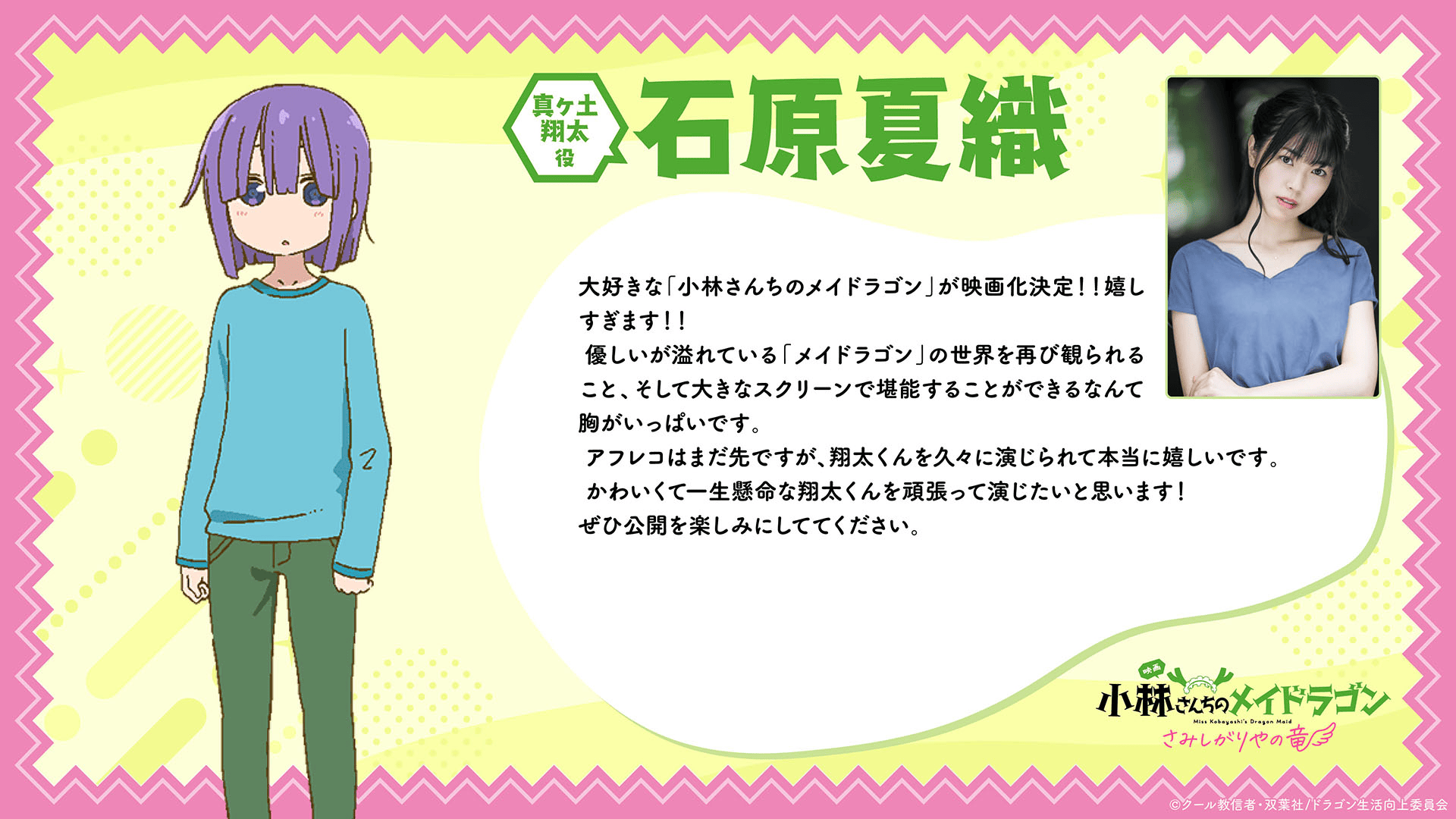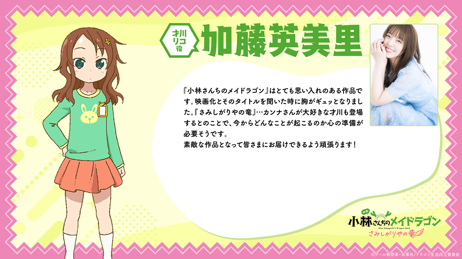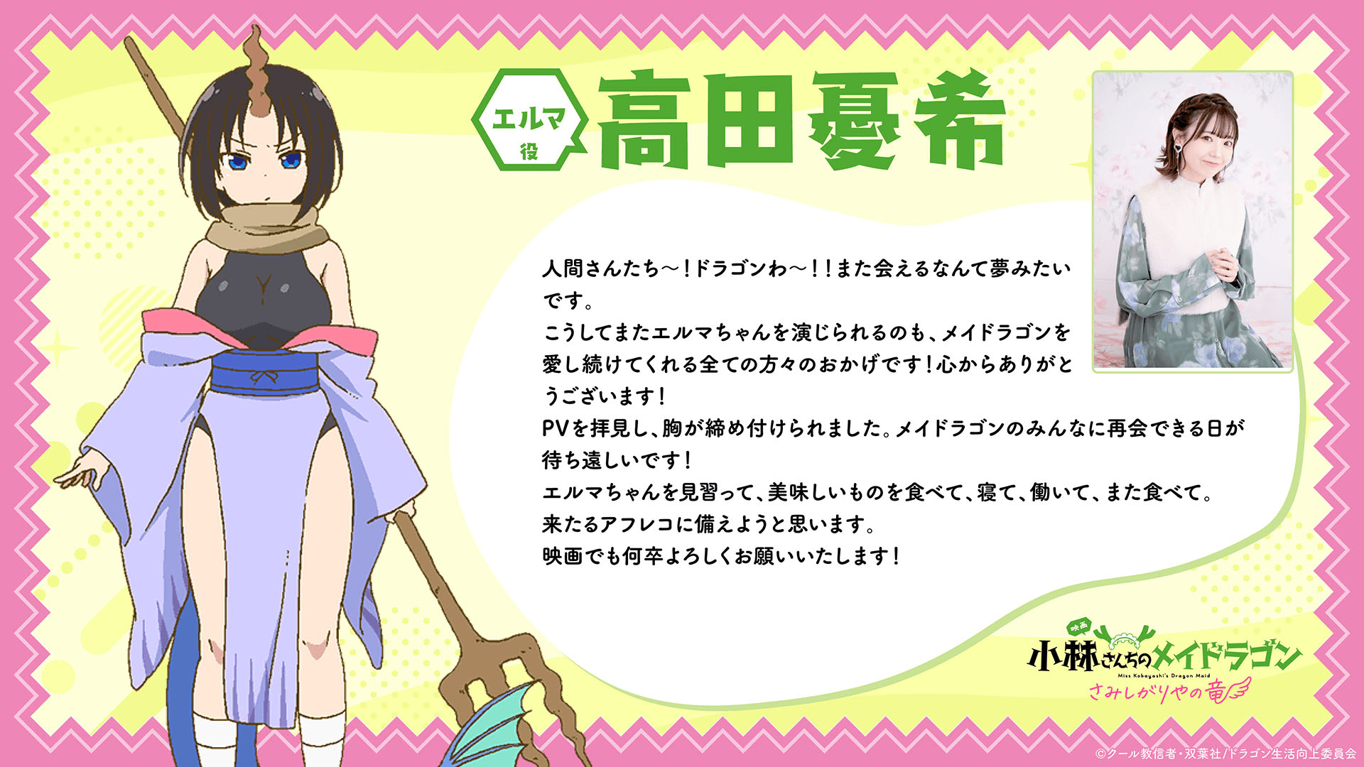 “Miss Kobayashi’s Dragon Maid holds a very special place in my heart. My chest tightened with emotion when I heard about the movie and its title. ‘A Lonely Dragon Wants to be Loved,’ and with Saikawa, who loves Kanna, also appearing, I’ll need to mentally prepare myself for what’s to come.