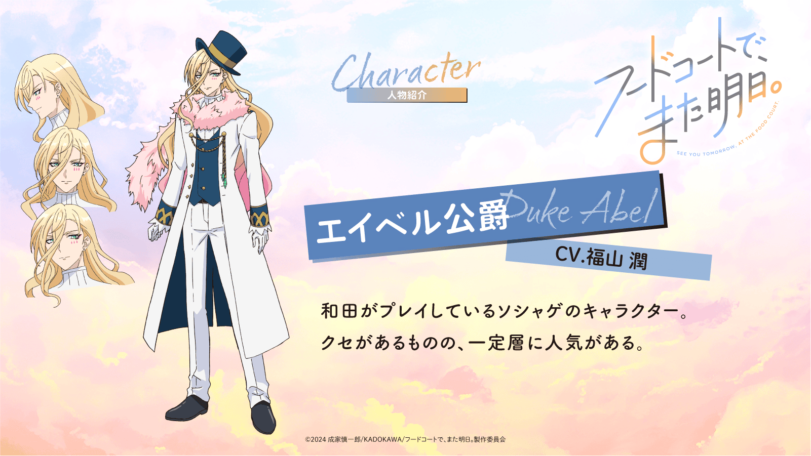 The official website of the anime adaptation of Naruse Yoshiki’s See You Tomorrow at the Food Court manga series has announced two new cast members and shared their characters’ visuals.