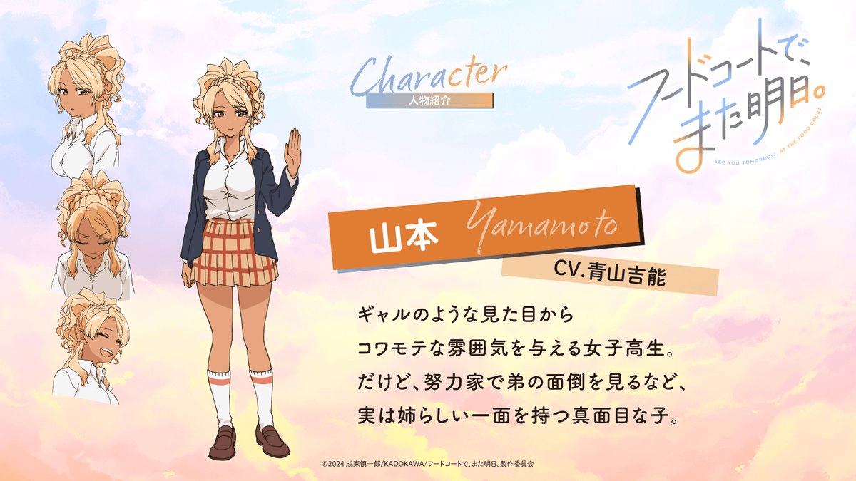 The official website of the anime adaptation of Naruse Yoshiki’s See You Tomorrow at the Food Court manga series has released the anime’s first teaser promotional video.
