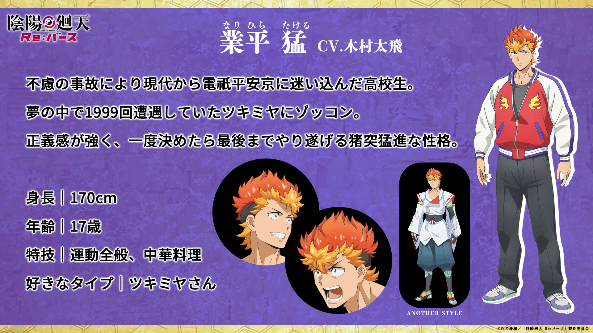 Character visuals of Narihira Takeru, voiced by Kimura Taihi