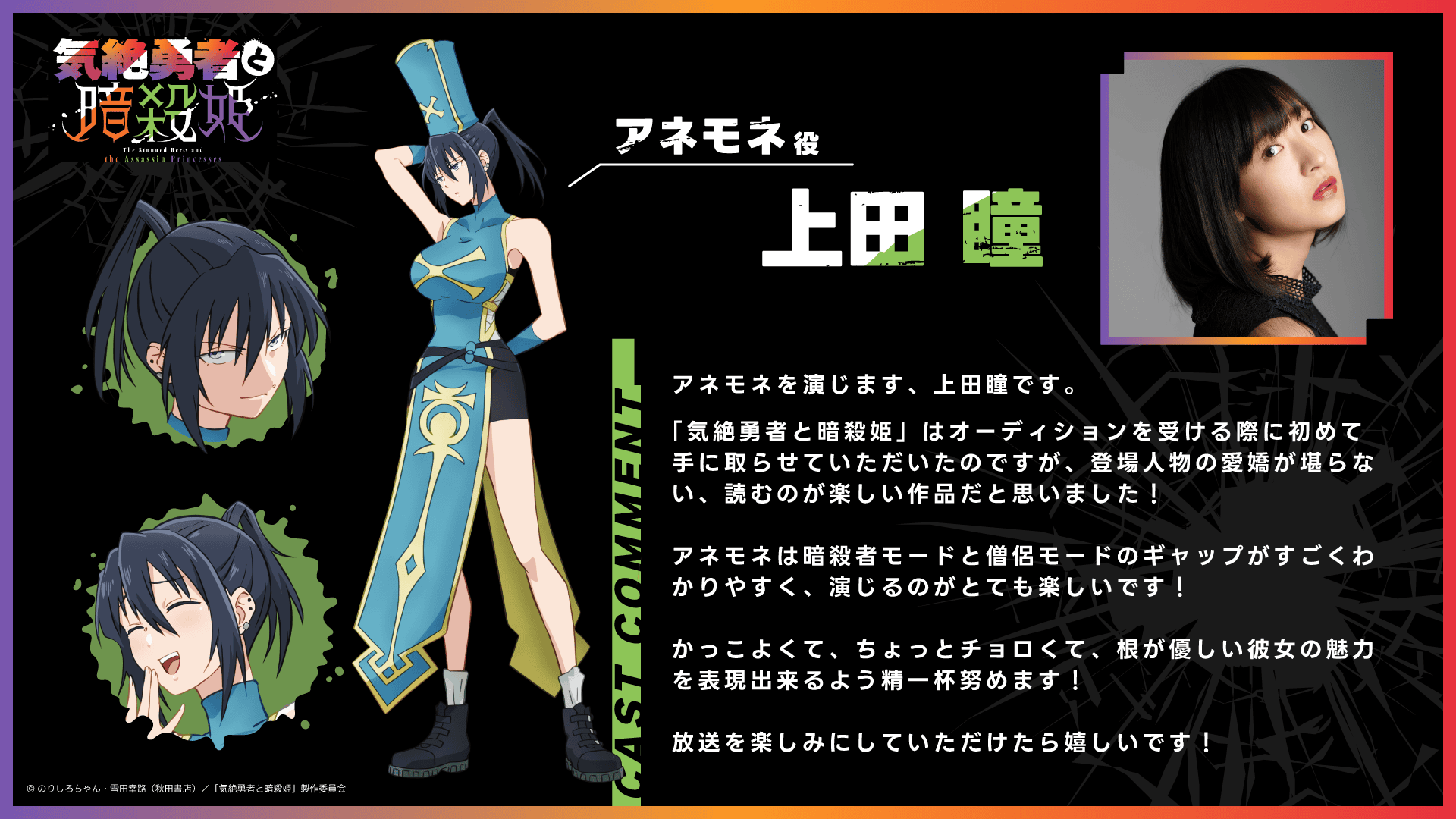 - “My name is Ueda Hitomi, and I will be playing Anemone.