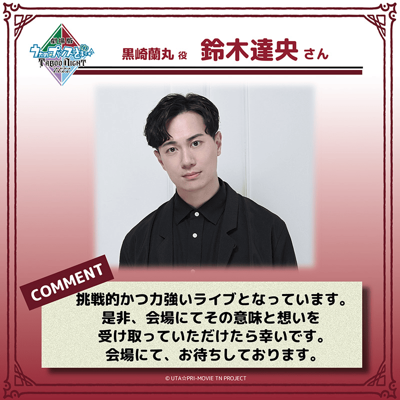 I hope you can once again feel the unwavering bond of QUARTET NIGHT. Please look forward to it!”